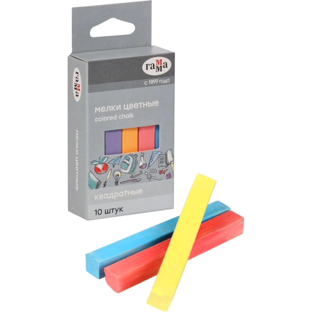 Мел школьный Гамма набор 10цв.,мягкий, квадратная форма, 0909194