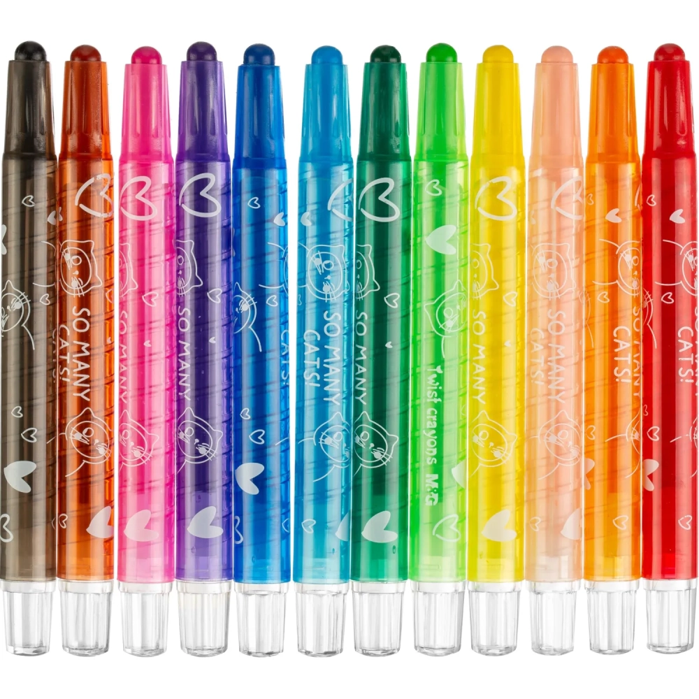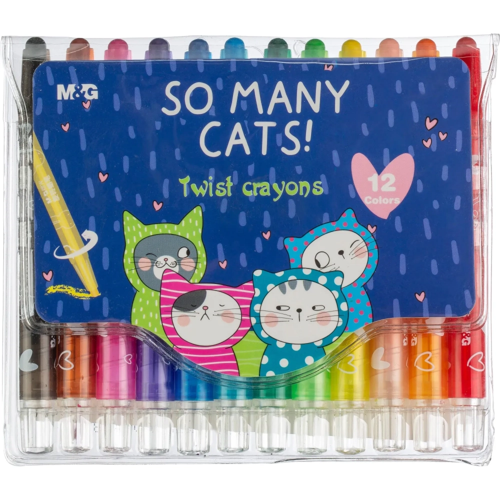 Мелки восковые M&G, круглые, выдвижной механизм, 12 цветовв наб, для детей