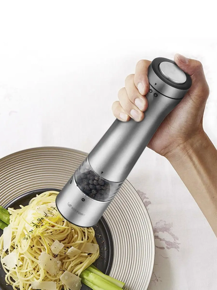 Электрическая мельница для специй от Kitfort — это бытовая техника, которая станет незаменимым помощником на вашей кухне. Она идеально подходит для ежедневного использования и добавит изысканности вашему столу. Этот набор мельниц для специй — это не просто посуда, а важный элемент кухонной техники, который поможет вам раскрыть новые грани вкуса ваших блюд.