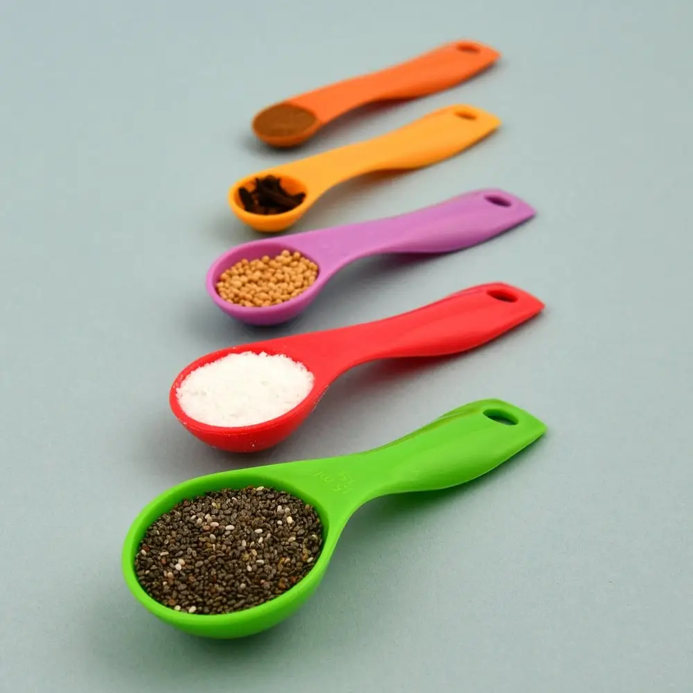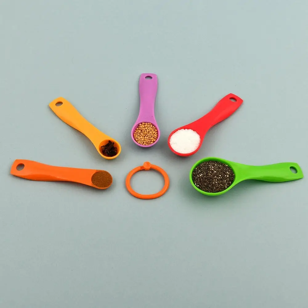 Использование мерных ложек во многом упрощает процесс приготовления блюд и разной выпечки. В наборе 5 мерных ложек, объёмами 1 мл; 2,5 мл; 5 мл; 7,5 мл; 15 мл. Зачастую правильное приготовление блюд требует соблюдения дозировки и нужно отмерить чёткое количество соли, сахара, приправ, заправки, уксуса и других ингредиентов. Также мерные ложки пригодятся для дозирования детских смесей, спортивного питания, кормов для питомцев, косметических масок, лекарственных сиропов. Кропотливые замеры вручную останутся позади, если использовать для этого мерные ложки. Мерные ложки соединены разъёмным пластиковым кольцом, что обеспечивает их компактное хранение на вашей кухне и всегда будут под рукой. Перед первым и после каждого применения, промыть в тёплой воде, можно с жидким моющим средством, сполоснуть проточной водой и просушить. Можно мыть в посудомоечной машине.