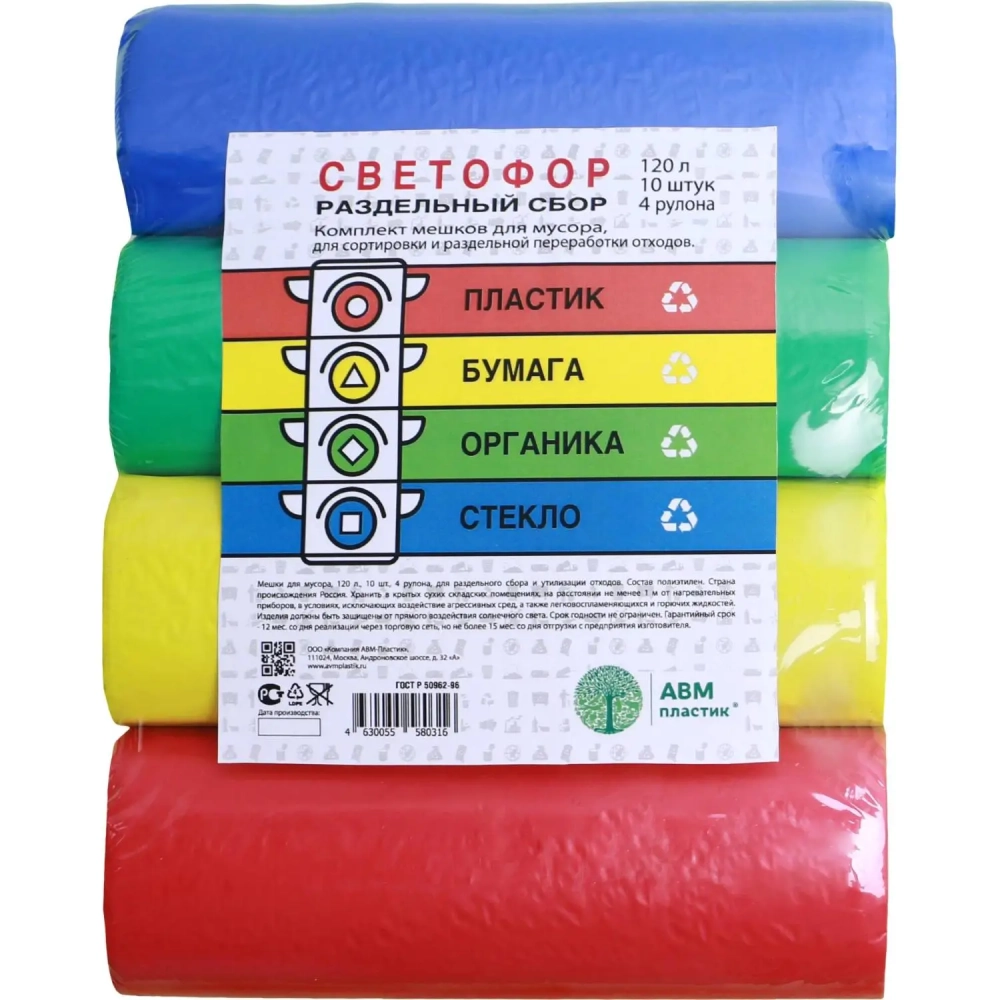 Мешки для мусора ПНД 120л 25мкм 10шт/рул Светофор 70х110мм