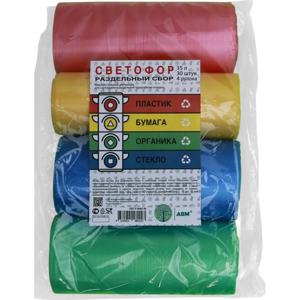 Мешки для мусора ПНД 35л 8 мкм 30шт/рул Светофор 48х58мм