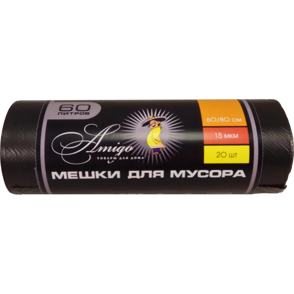 Мешки для мусора ПНД 60л 15мкм 20шт/рул черный 60х80см Luscan