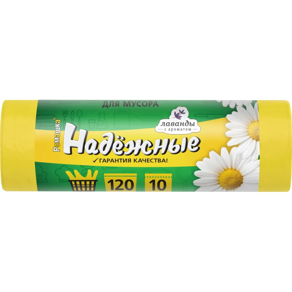 Мешки для мусора ПСД 120л 16,5мкм 10шт/рул желтый 70х110см Надежные