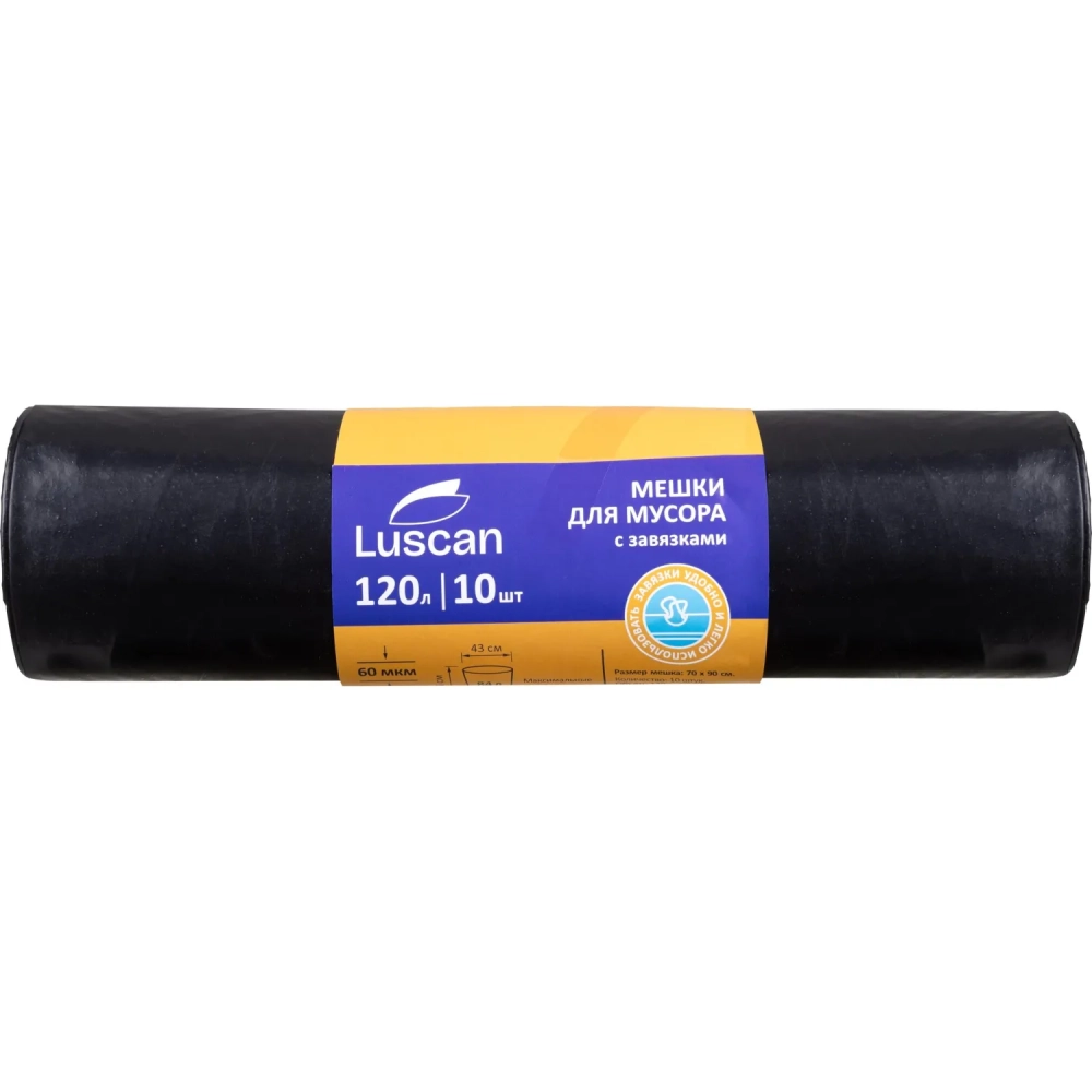 Мешки для мусора ПВД 120л 60мкм 10шт/рул чрн 70х90см с завяз Luscan