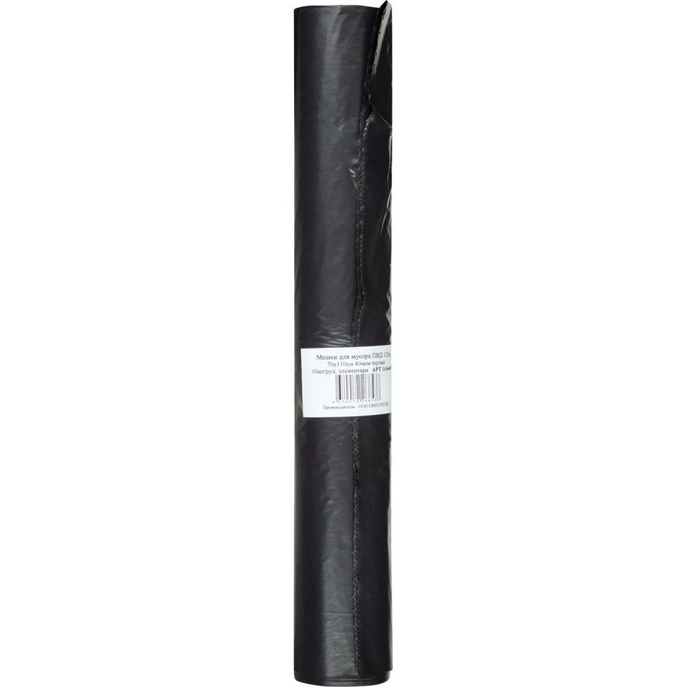 Мешки для мусора ПВД 120л 70х110см 40мкм черные 10шт/рул Элементари