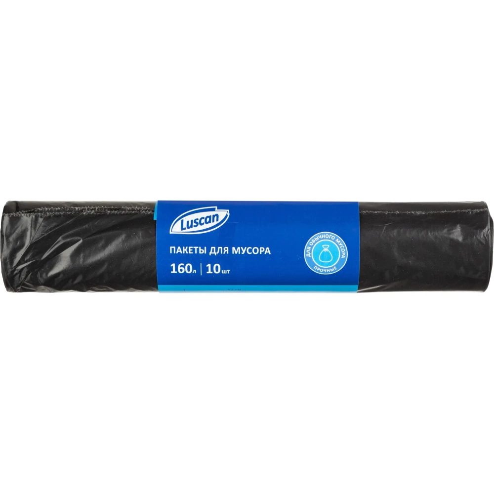 Мешки для мусора ПВД 160л 40мкм 10шт/рул черные 90х120см Luscan