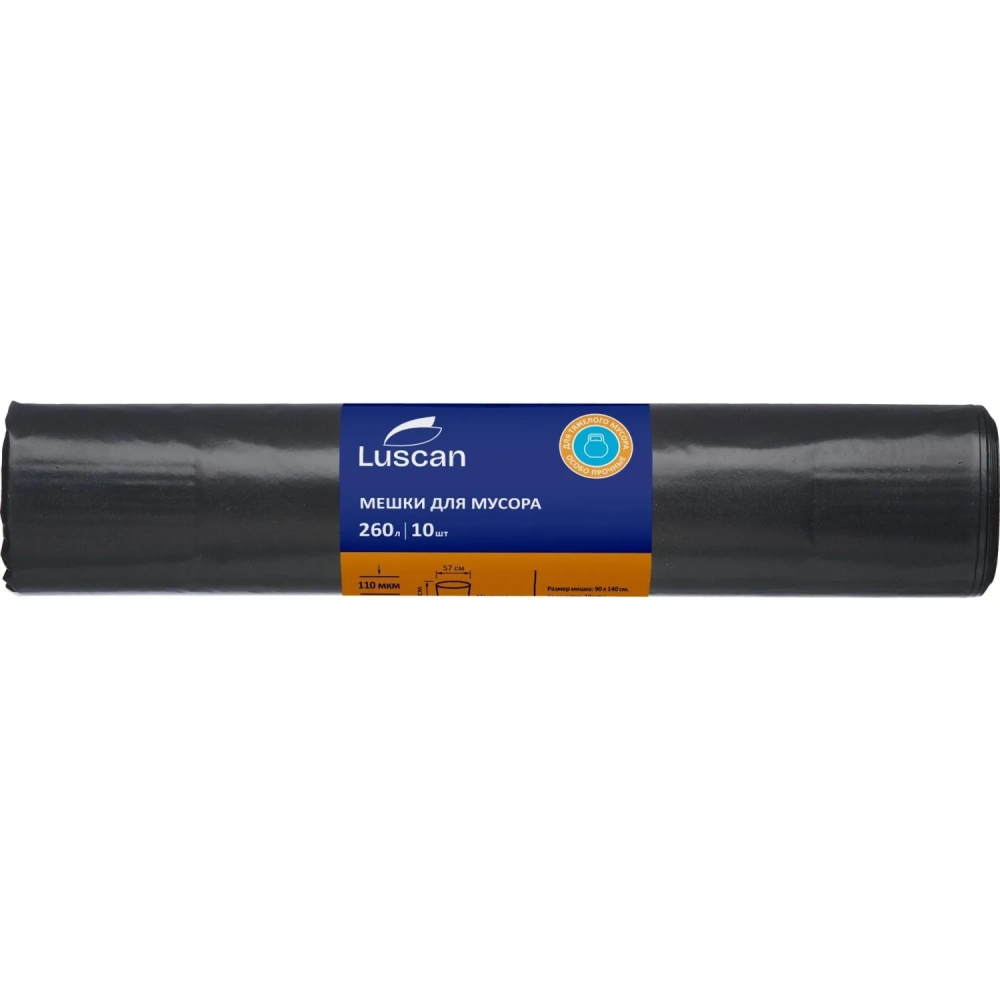 Мешки для мусора ПВД 260л 110мкм 10шт/рул черные 90x140см_СПБ