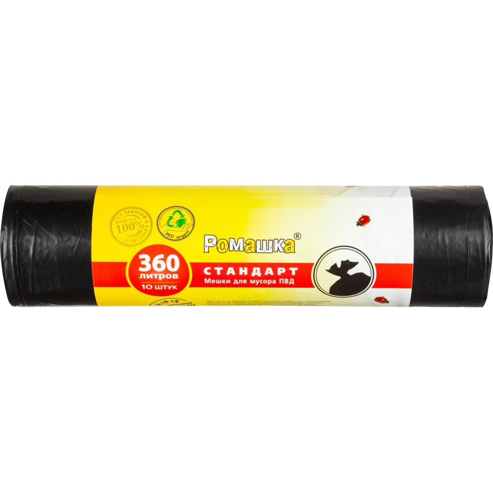 Мешки для мусора ПВД 360л 30мкм 10шт/рул черные 120х160см Стандарт