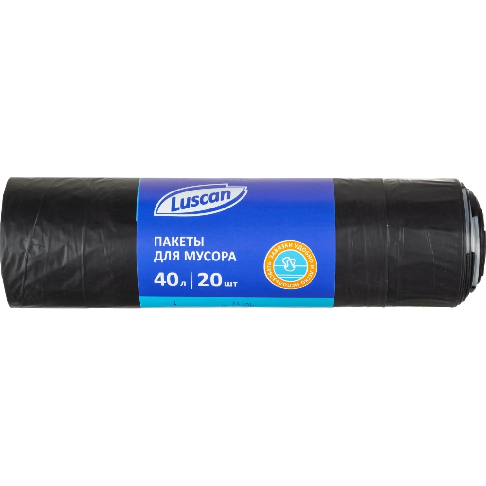 Мешки для мусора ПВД 40л 30мкм 20шт/рул черные 55х70см Luscan с завязками