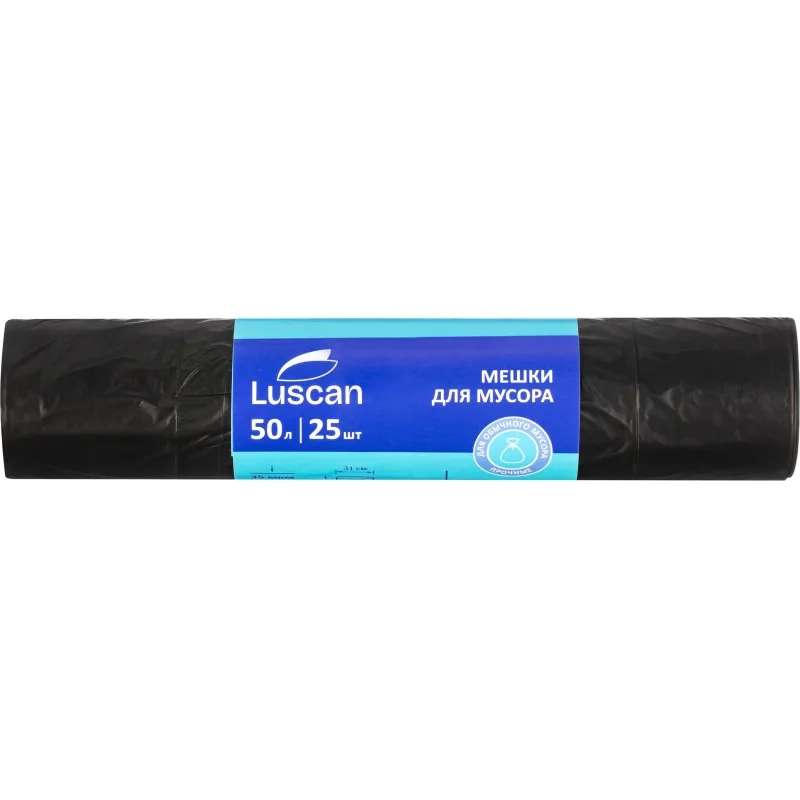 Мешки для мусора ПВД 50л 35мкм 25шт/рул черные 50х70см Luscan_СПБ