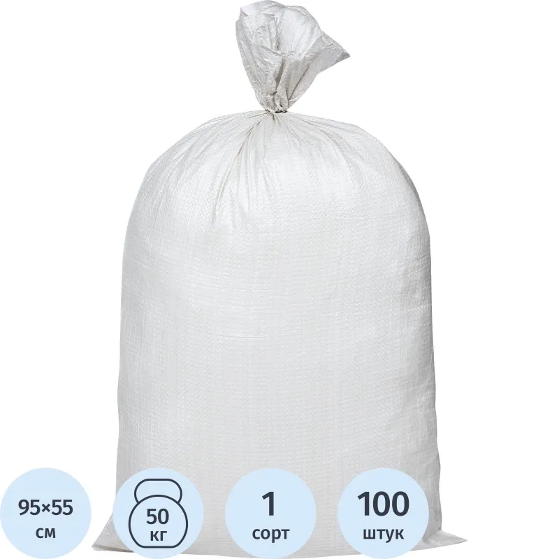 Мешок ПП 55х95см 1С белый 100 шт/уп