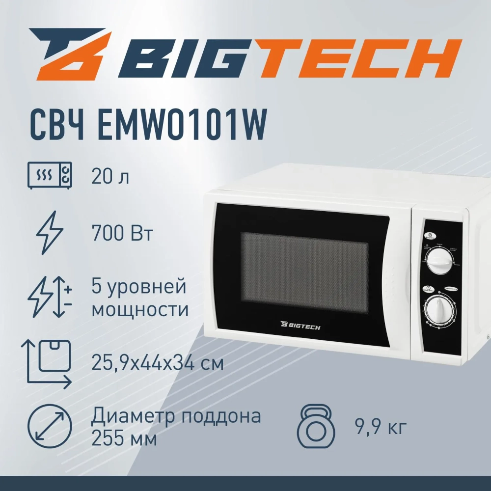 Микроволновая печь BigTech EMWO101W, 20л., 700 вт. белый