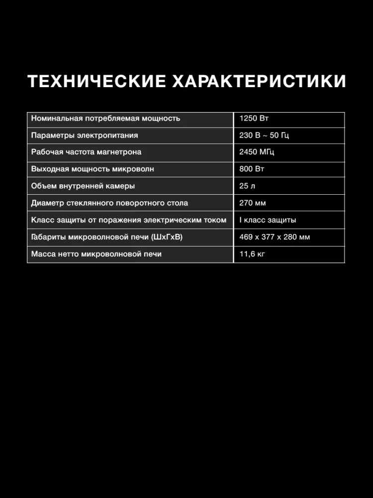 Автоповар на 8 программ. Удобный поворотный регулятор позволит выбрать нужные автоматические программы с заранее установленными временем и температурой. Быстро и легко запекайте картофель, мясо, рыбу и овощи, делайте пасту, попкорн, готовьте напитки или включайте автонагрев на максимальной мощности.