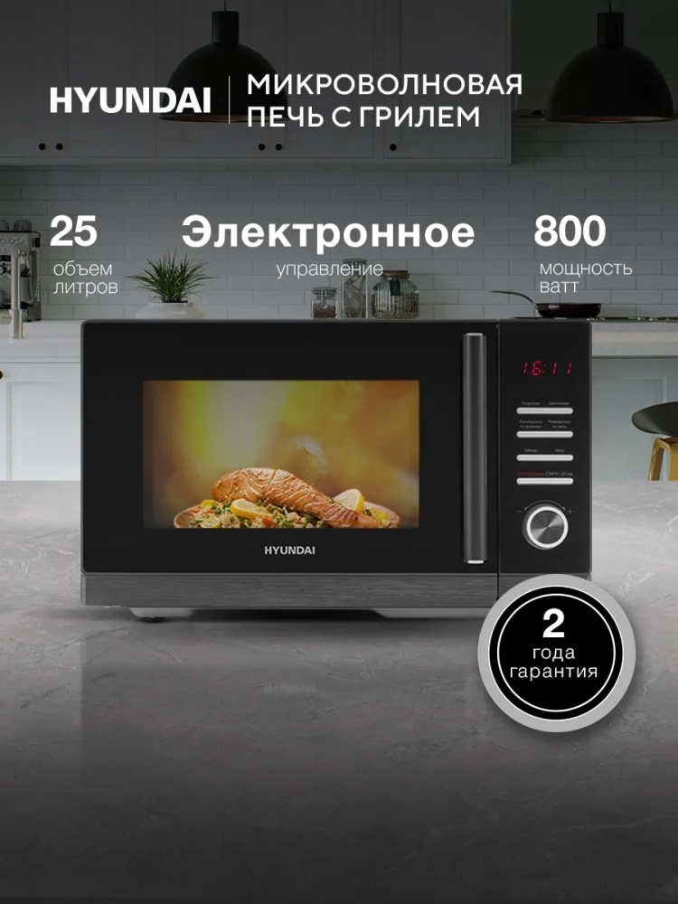Быстро размораживайте продукты, легко разогревайте пищу и с удовольствием готовьте разнообразные блюда в микроволновой печи Hyundai HYM-D3012 с функцией автоповара. Модель обладает вместительной камерой на 25 л и поворотным столом диаметром почти 29 см. Можно подогреть суп для одной персоны или приготовить запеканку с мясом и овощами для всей семьи. У устройства оптимальная мощность – 800 Вт.