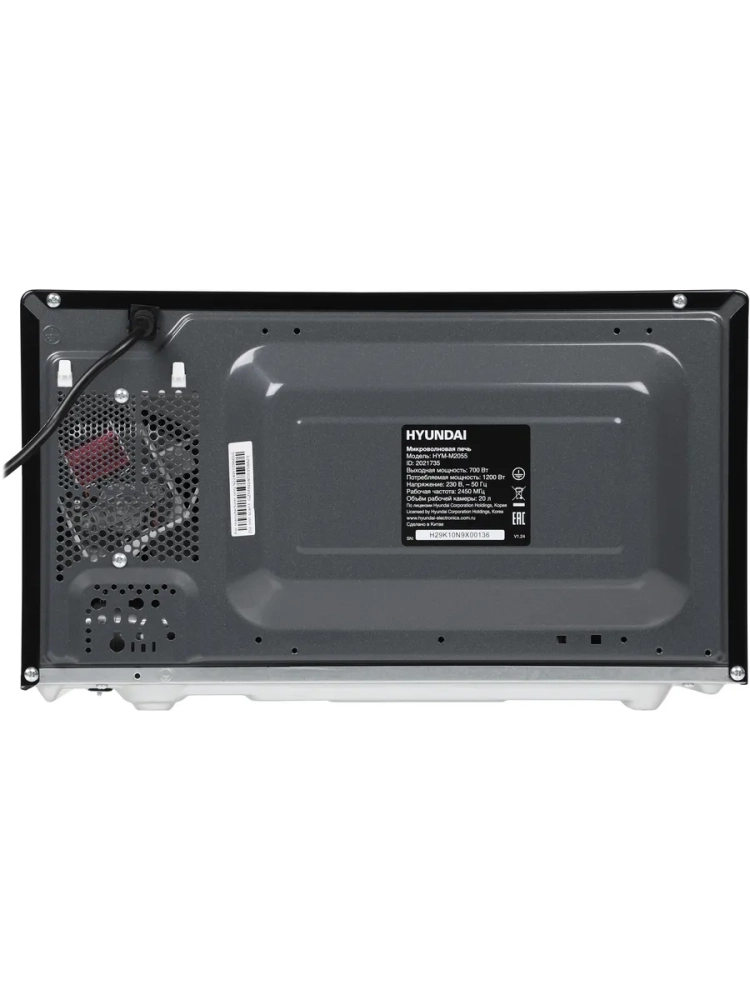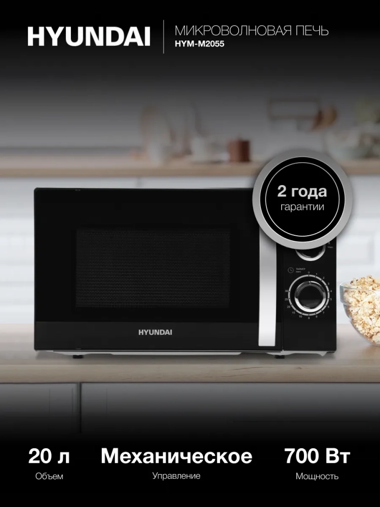 Микроволновая печь (СВЧ) Hyundai HYM-M2055 черный/серебристый, мощность 700Вт, объем 20л, механическое управление