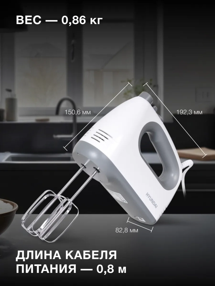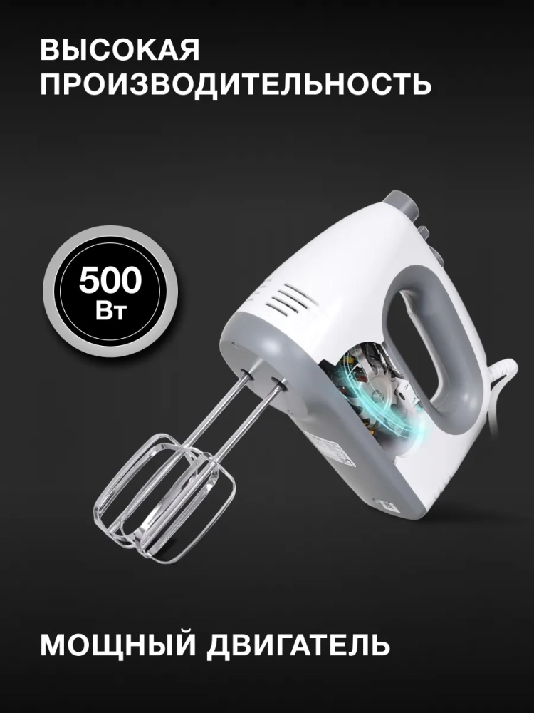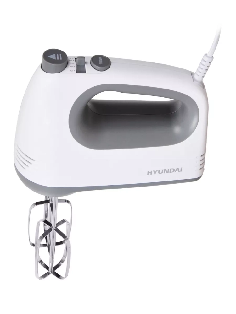 Миксер ручной Hyundai HYM-H4501 белый/серый, мощность 500Вт, скоростей работы: 5. Низкий уровень шума.