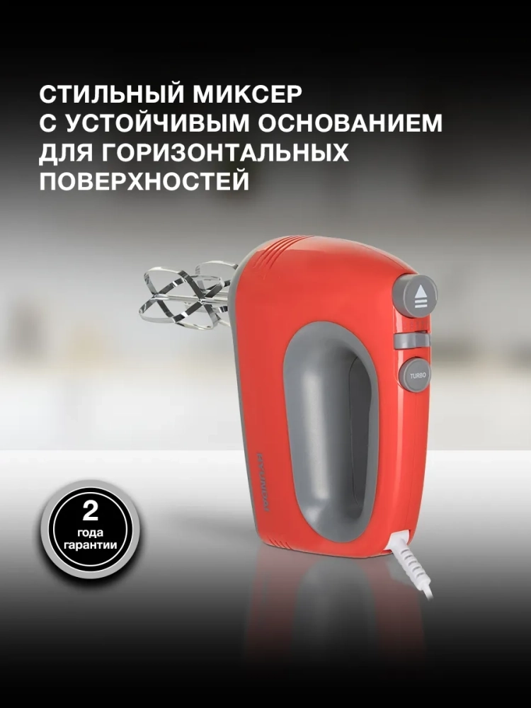 Миксер ручной Hyundai HYM-H4511 красный/серый, мощность 500Вт, скоростей работы: 5. низкий уровень шума