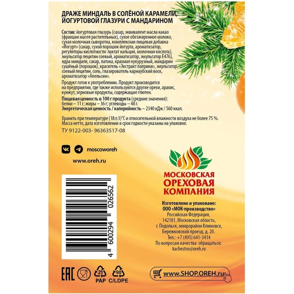Миндаль драже Стильные штучки в сол карам, йогурт глазури с мандарином 120г