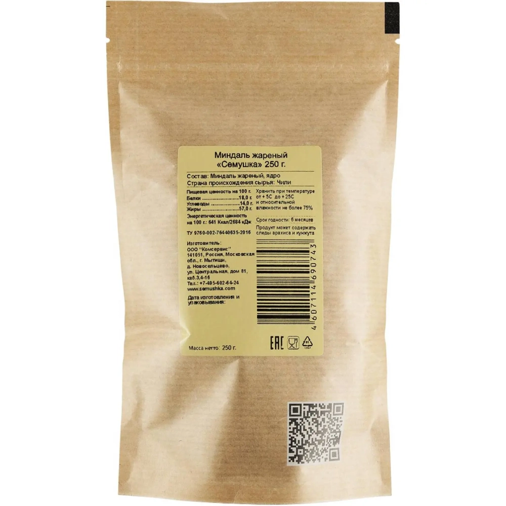 Миндаль Семушка жарен., 250г