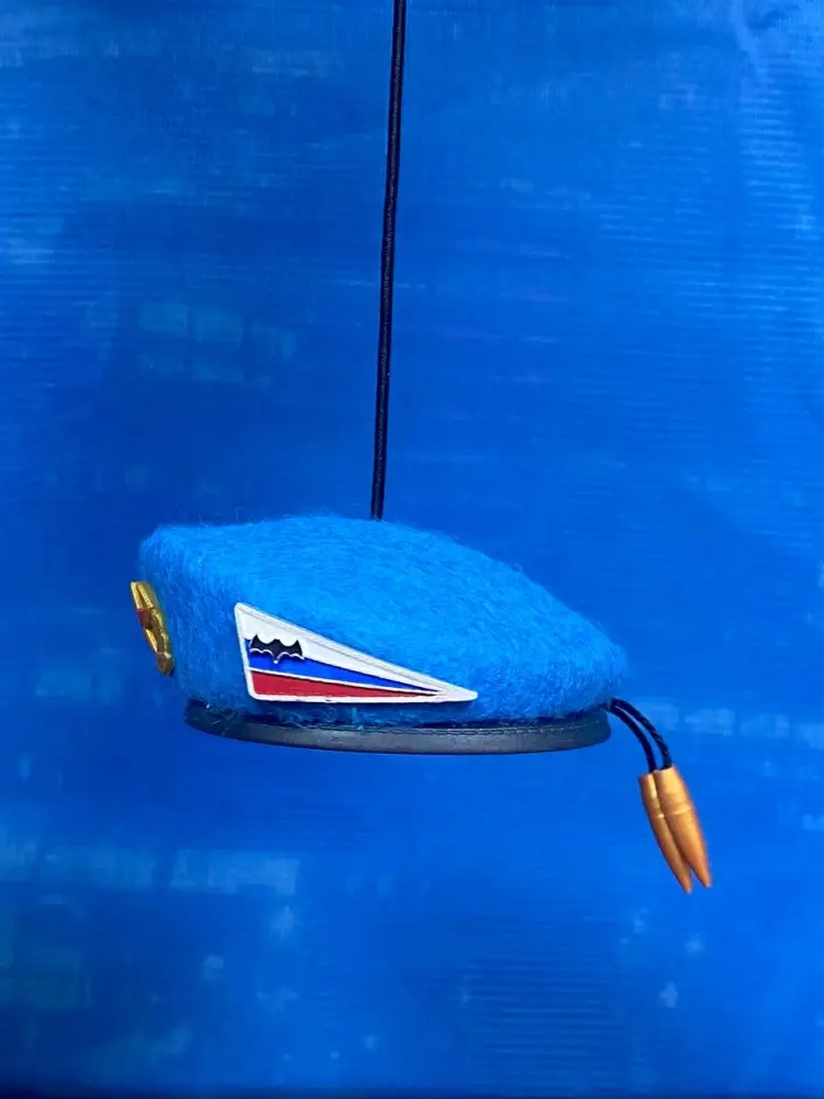 Мини берет выполнен с максимальной точностью. Ткань фетр, форма берета, кокарда, околышек, пульки, все в миниатюре. Проделана хорошая ручная работа. Лучше подарка для Десантника не найти. Эксклюзивная работа на 100%.