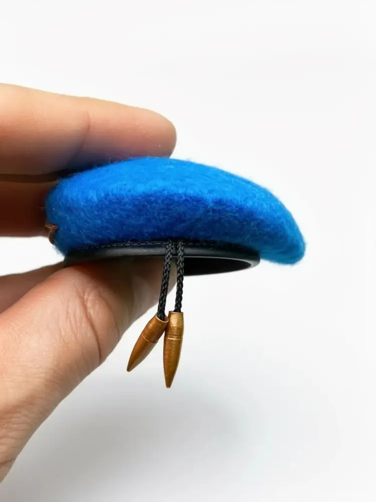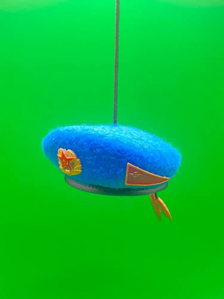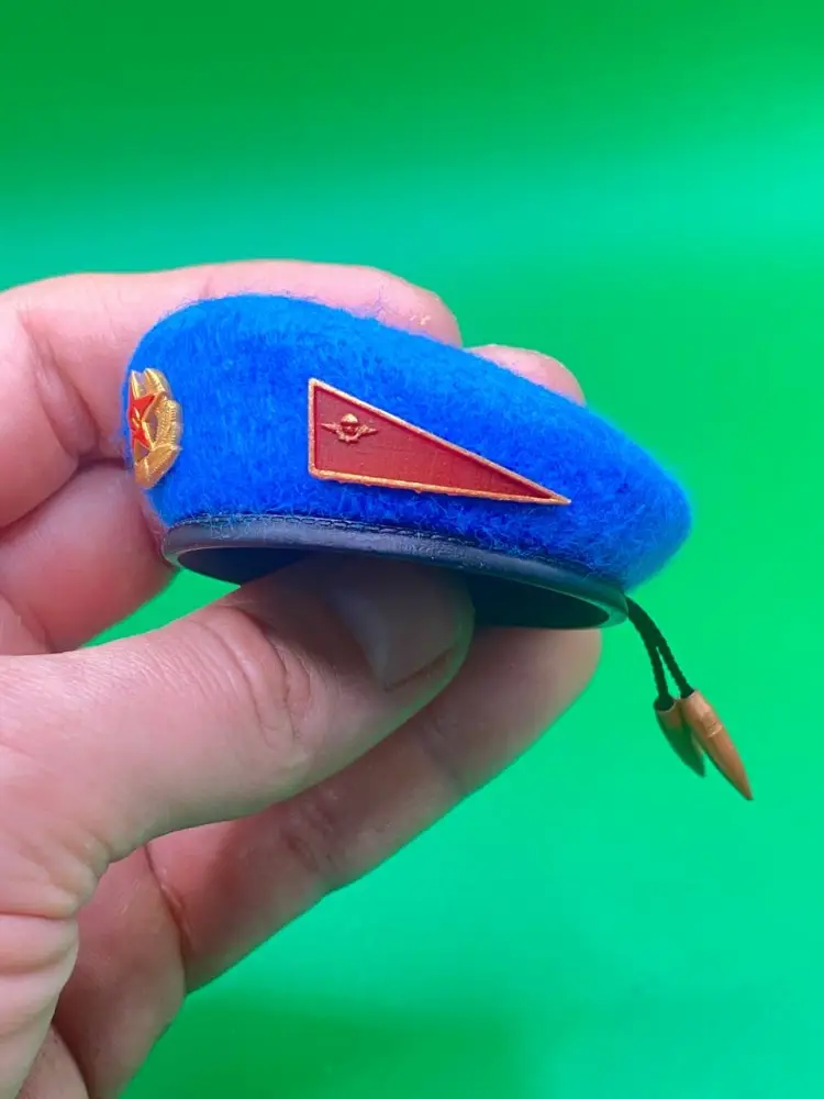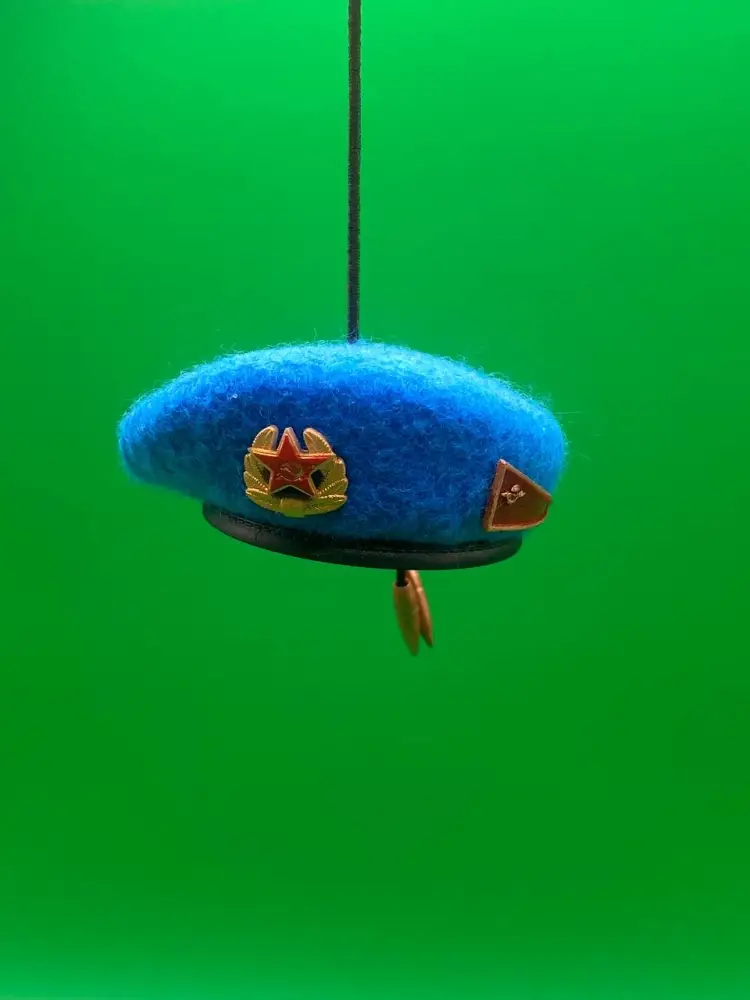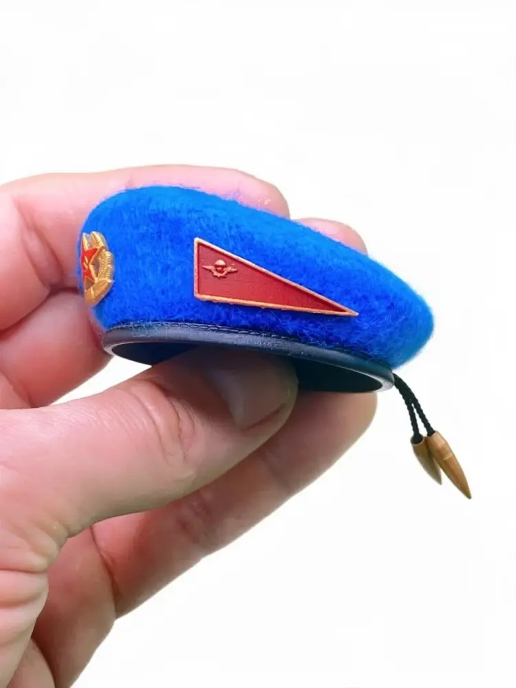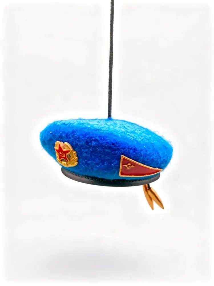 Мини берет выполнен с максимальной точностью образца СССР. Ткань фетр, форма берета, кокарда, околышек, пульки, все в миниатюре. Проделана хорошая ручная работа. Лучше подарка для Десантника старой гвардии не найти. Эксклюзивная работа на 100%.