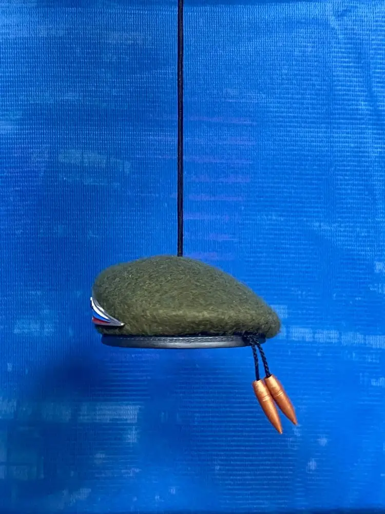 Мини берет выполнен с максимальной точностью. Ткань фетр, форма берета, кокарда, околышек, пульки, все в миниатюре. Проделана хорошая ручная работа. Лучше подарка для РАЗВЕДЧИКА не найти. Эксклюзивная работа на 100%.