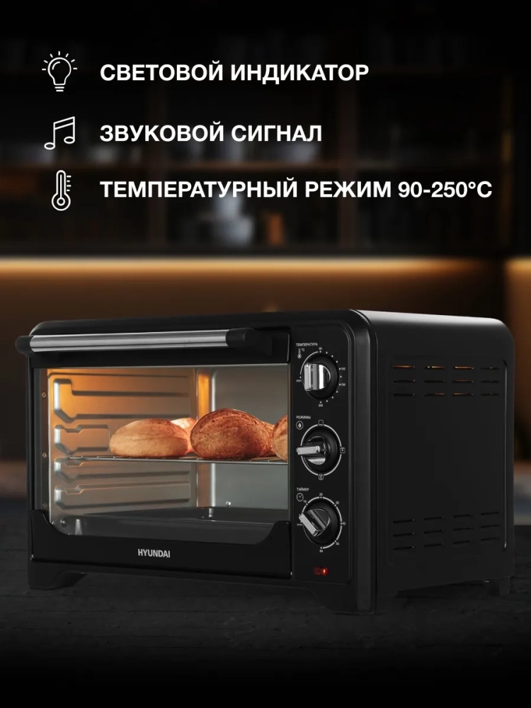 Набор аксессуаров. В комплекте с Hyundai MIO-HY092 поставляются решетка-гриль, эмалированный прямоугольный противень, поддон для крошек и масла. Готовьте любимые блюда легко и комфортно.