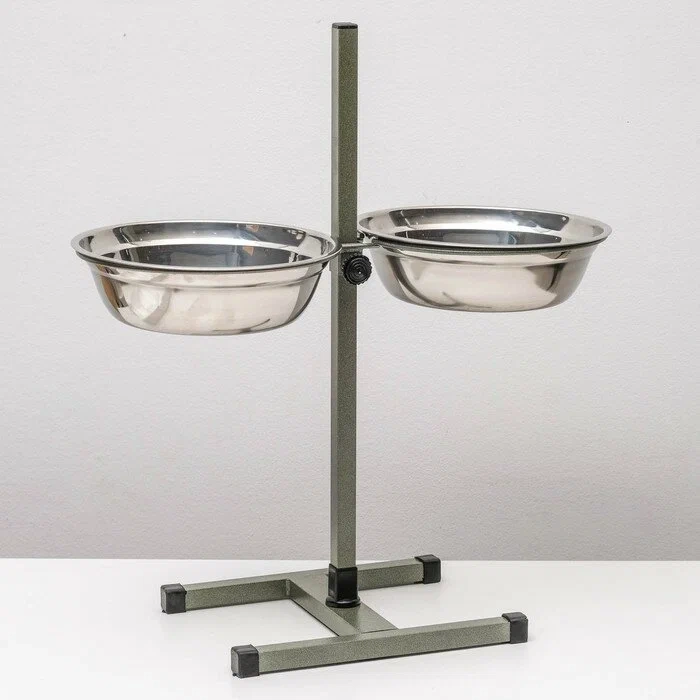 Подставка с мисками, 2 х 350 мл, высота 30 см, разборная, зелёная