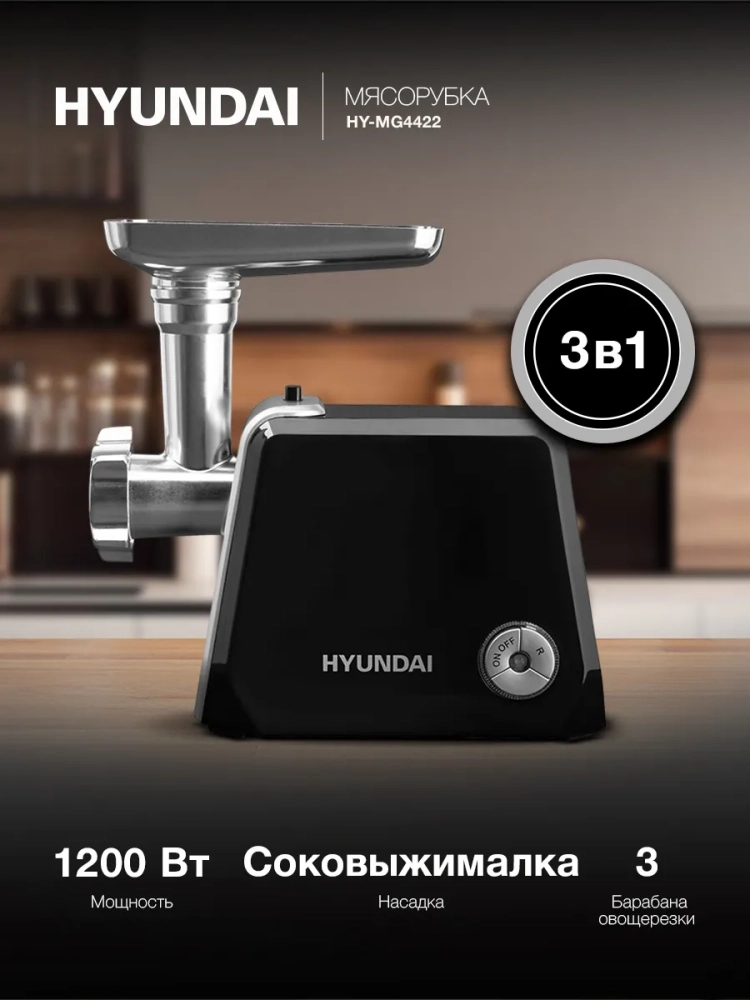 Электрическая мясорубка HYUNDAI HY-MG4422 — это мощный и многофункциональный кухонный прибор для приготовления фарша, колбас, кеббе, а также измельчения овощей и отжима сока. Стильный дизайн, надежные материалы и продуманная конструкция делают эту модель идеальным выбором для кулинаров.