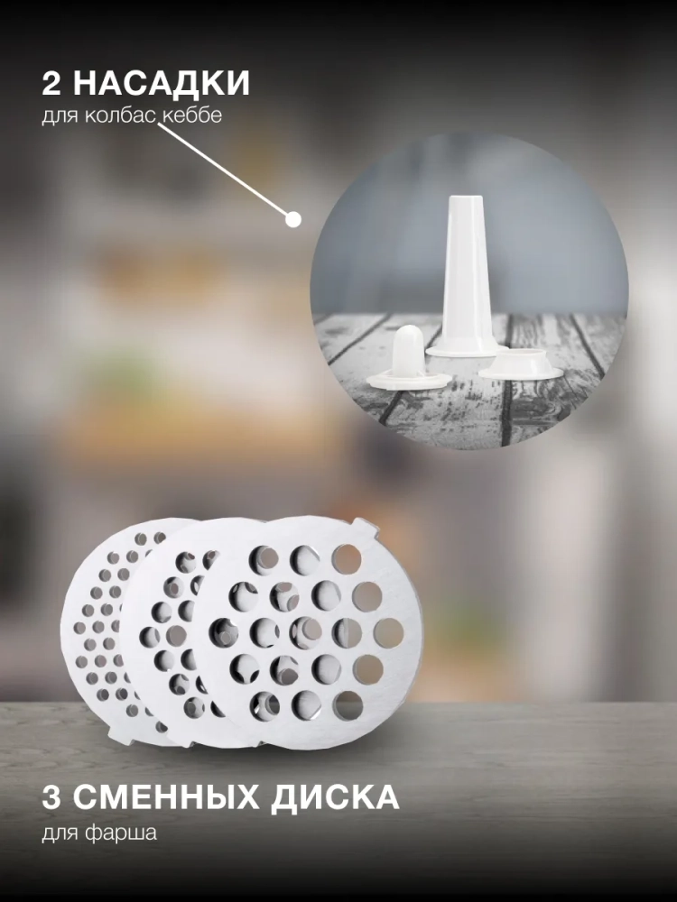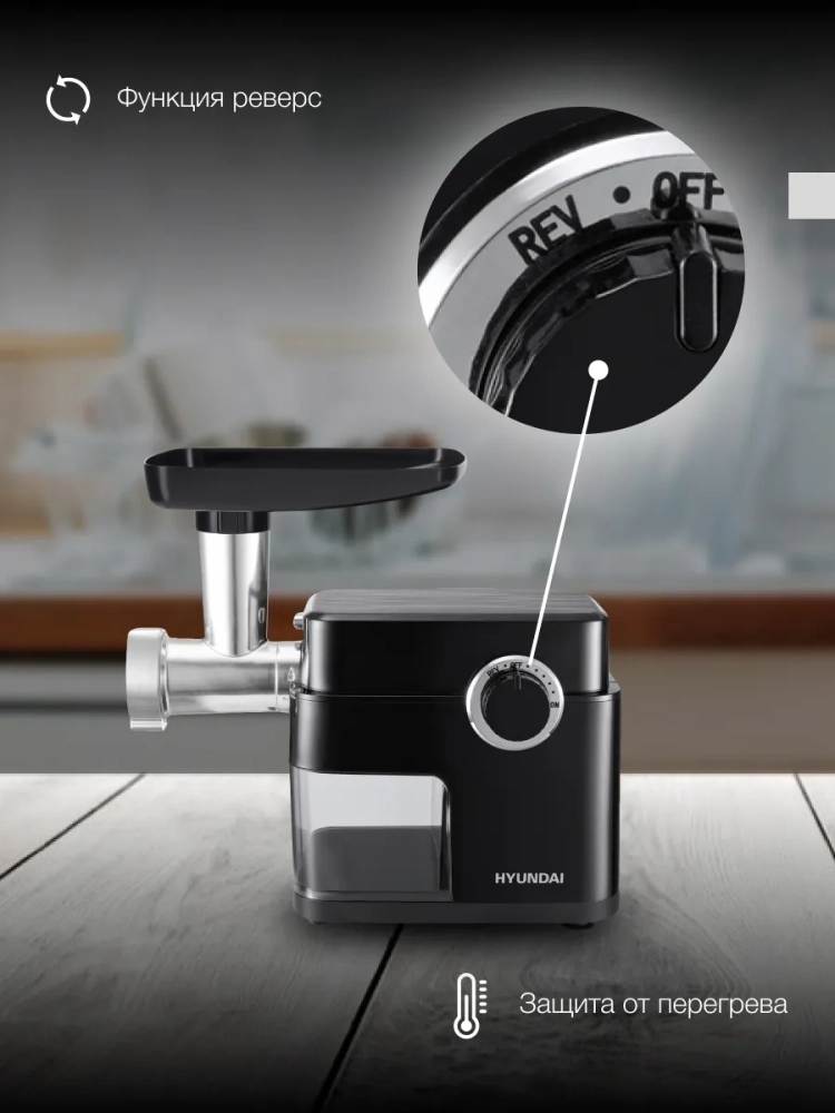 Мясорубка Hyundai HY-MG6491 черный, мощность 1900Вт, дисков для фарша 3, материал лотка пластик, длина кабеля питания 1м, диски с отверстиями диаметром 3 мм, 5 мм и 7 мм; тёрка для протирки фруктов и овощей; средняя и крупная тёрка; шинковка; насадки для колбас и кеббе