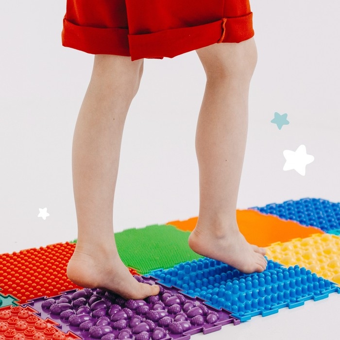 Ортопедическое напольное покрытие состоит из отдельных модулей, которые соединяются между собой по принципу пазла. По массажному коврику можно ходить или выполнять упражнения, стоя на нём. Во время занятий стимулируются рецепторы на стопе и формируются её физиологические своды. Изделие применяется для профилактики плоскостопия у детей, массажа стоп и снятия усталости ног.