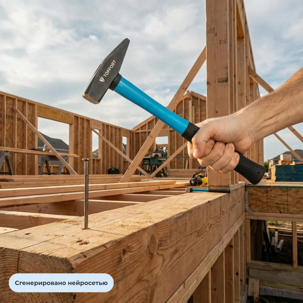 Молоток 500 г Topfort из углеродистой стали, фибергласовая рукоятка
