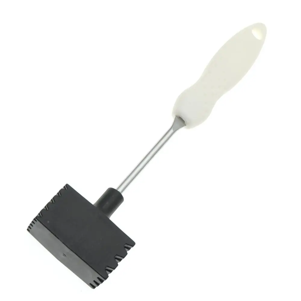 Для приготовления нежнейших мясных отбивных используйте молоток для мяса «Формоза». С этим приспособлением вы размягчите мясные волокна и жилки. Молоток имеет две рабочие стороны с крупными и мелкими зубцами. После использования тщательно промывайте изделие в проточной воде с жидкими средствами. Рабочая часть изготовлена из пластмассы (усиленный нейлон), ручка изготовлена из хромированной стали и пластмассы (полипропилен).