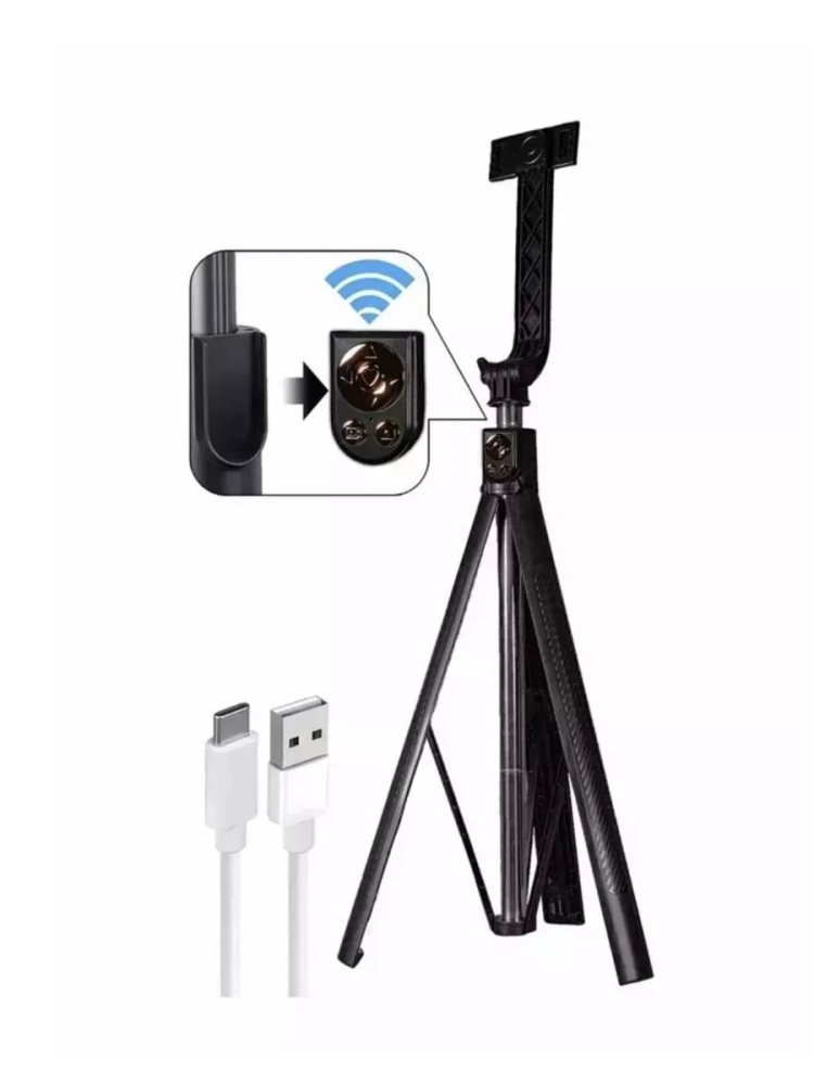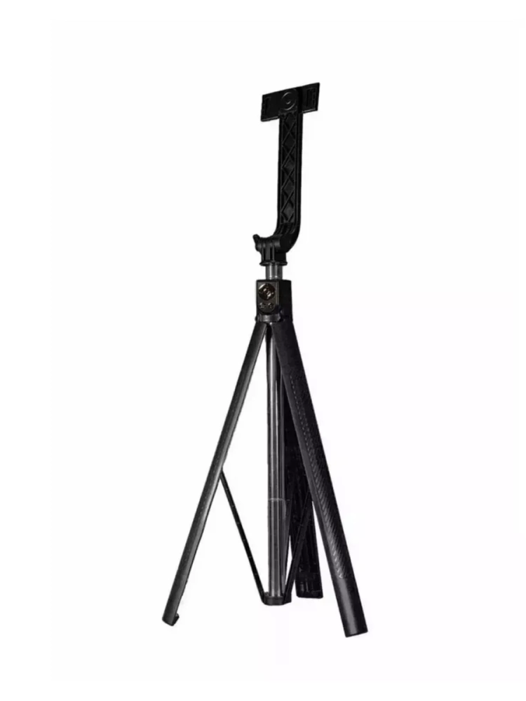Поворотное крепление на 360 градусов позволяет установить телефон под любым углом — вертикально, горизонтально или под наклоном. Кроме того, монопод имеет устойчивую треногу с раскладными ножками, благодаря чему его можно использовать как штатив, что добавляет удобство при съемке статичных кадров.