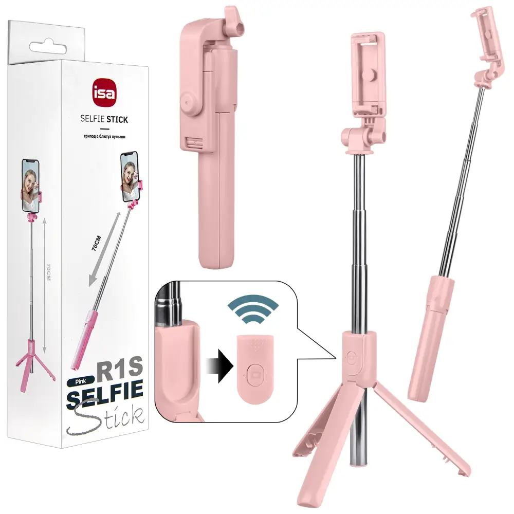 Монопод-трипод с блютуз пультом, R1S ISA розовый