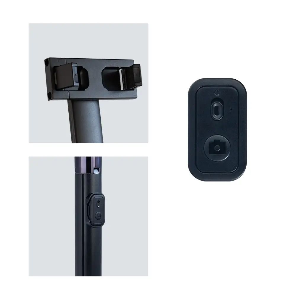 Монопод-трипод R6 - это профессиональный аксессуар который сочетает в себе функции монопода и устойчивого трипода с 3 ножками для создания качественного контента в любых условиях и идеальной съемки селфи. Модель сочетает в себе прочный корпус с удобной эргономичной рукояткой, обеспечивающей комфортный хват даже при длительном использовании. Выдвижная конструкция позволяет регулировать длину для оптимального ракурса, а универсальное крепление совместимо со всеми современными смартфонами, гарантируя надежную фиксацию устройства. В комплекте идет Bluetooth-пульт для дистанционного управления камерой, что делает съемку еще удобнее. Компактные размеры в сложенном состоянии и легкий вес делают R6 идеальным спутником для путешествий, мероприятий и повседневного использования. Селфи-монопод R6 – это стильное и практичное решение для блогеров, путешественников и всех, кто ценит удобство и качество съемки в любых условиях.