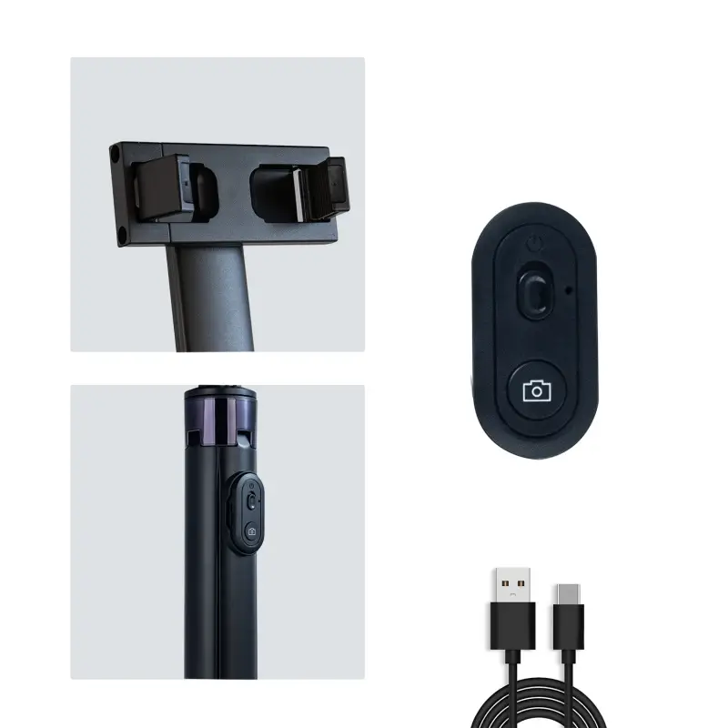 Монопод-трипод R9 - это универсальный аксессуар для профессиональной съемки, который сочетает в себе функции монопода и устойчивого трипода с 4 ножками, обеспечивая идеальную стабилизацию для селфи, видеоблогинга и прямых трансляций. В комплекте идет Bluetooth-пульт ДУ, позволяющий дистанционно управлять камерой смартфона – делать снимки, запускать/останавливать запись без касания экрана. Модель оснащена плавно выдвигающейся штангой, эргономичной рукояткой и универсальным креплением, совместимым со всеми современными смартфонами. Компактный размер в сложенном состоянии делает его идеальным для путешествий, а быстрая трансформация в трипод с четырьмя ножками позволяет зафиксировать устройство под любым углом для стабильной съемки. Селфи-монопод R9 – это профессиональный инструмент для создания качественного контента, объединяющий удобство дистанционного управления, мобильность и устойчивость в любых условиях съемки.