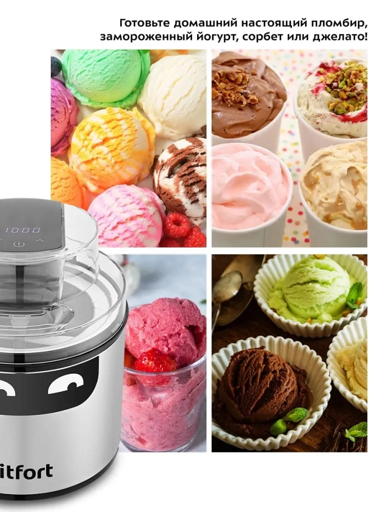 Полуавтоматическая мороженица Kitfort КТ-1828 поможет вам приготовить настоящее мороженое из натуральных продуктов, а также сорбет, джелато и замороженный йогурт. Мороженица снабжена системой смешивания и имеет чашу c хладагентом для охлаждения мороженого во время приготовления.