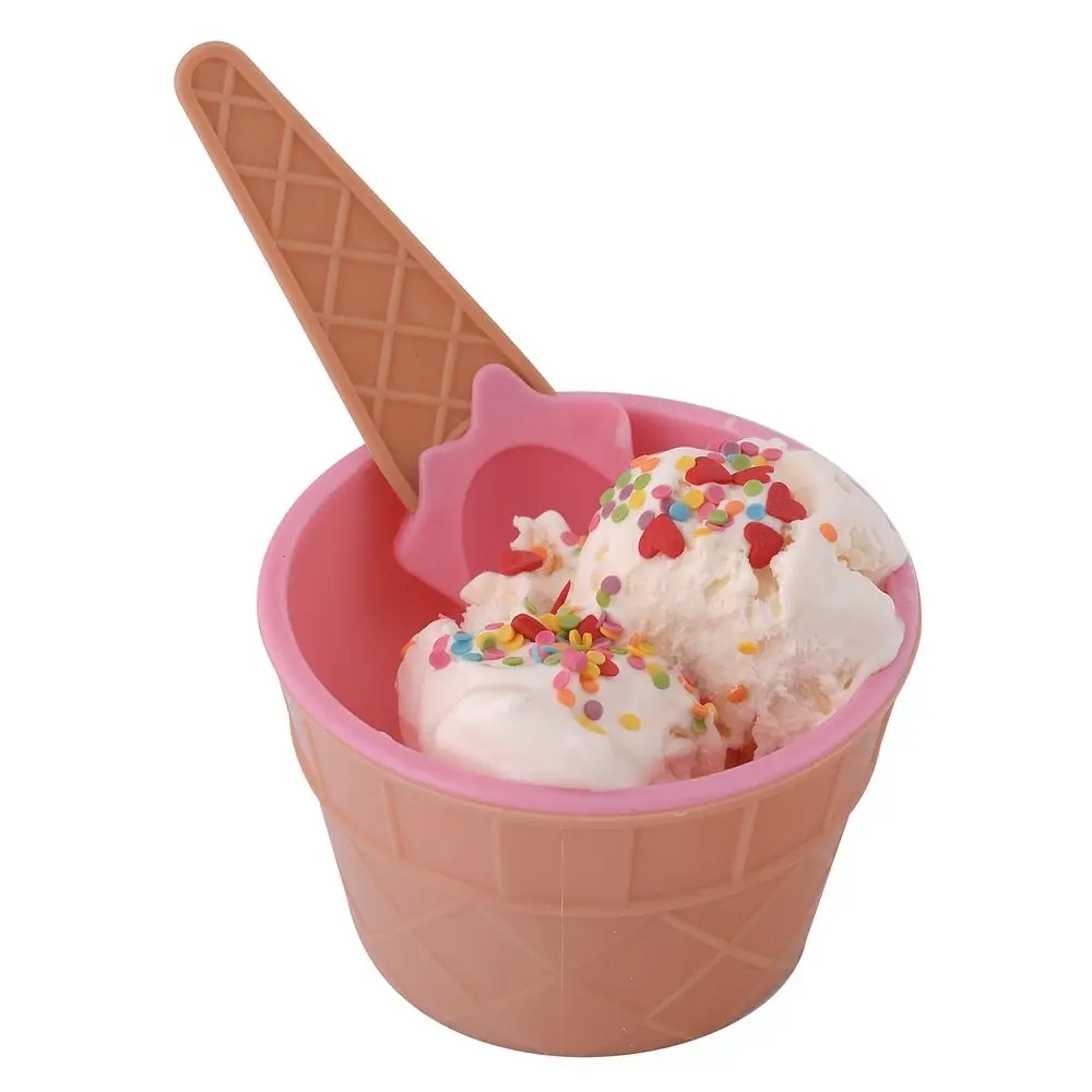 Как красиво подать мороженое? С помощью набора для мороженого сделать это легко. Наполните оригинальную креманку мороженым, подайте к нему ложку, которая идет в комплекте и наслаждайтесь вкусным десертом. Перед первым и после каждого применения, промыть в теплой воде, можно с жидким моющим средством, сполоснуть проточной водой и просушить. Можно мыть в посудомоечной машине.