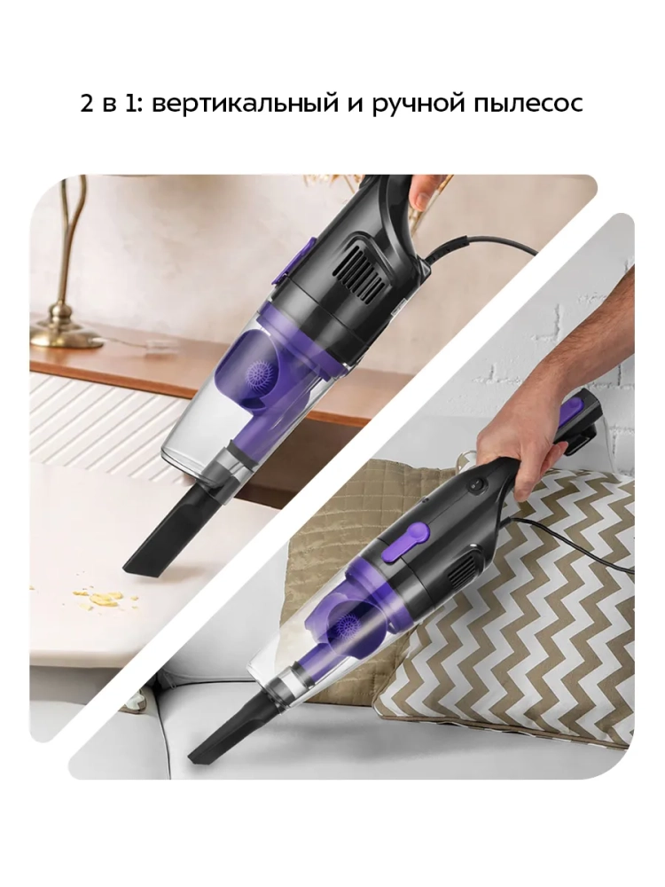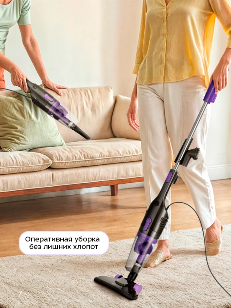 Вертикальный ручной пылесос для дома КТ-5156 от Kitfort — это идеальное решение для быстрой и эффективной уборки. Этот мощный пылесос 2 в 1 сочетает в себе функции вертикального и ручного устройства, что делает его универсальным помощником в доме. Благодаря компактным размерам и легкости, он всегда под рукой и готов к работе. Проводной пылесос обеспечивает стабильную мощность всасывания, а современный циклонный фильтр гарантирует качественную очистку без потери эффективности. Контейнер пылесборника легко снимается с моторного блока, что упрощает его очистку. Внутри контейнера находятся фильтры тонкой и грубой очистки, которые можно вынимать для чистки. Это позволяет поддерживать высокую производительность пылесоса на протяжении всего срока службы. В комплекте с пылесосом идут узкая насадка и ворсовая щетка, которые помогут справиться с уборкой мебели, углов и других труднодоступных мест. Специальные держатели на удлинительной трубке позволяют хранить насадки удобно. Функция вертикальной парковки экономит место при хранении устройства даже в небольших квартирах или домах с ограниченным пространством. Вертикальный пылесос идеально подходит для уборки пола: линолеума, паркета или ламината. Ручной режим позволяет быстро убрать обивку мебели или пропылесосить полочки на кухне или в гостиной. Мощный двигатель обеспечивает отличное всасывание даже при обычном использовании на различных поверхностях. Kitfort КТ-5156 — это не просто обычный прибор для уборки, это надежный бытовой помощник по дому!