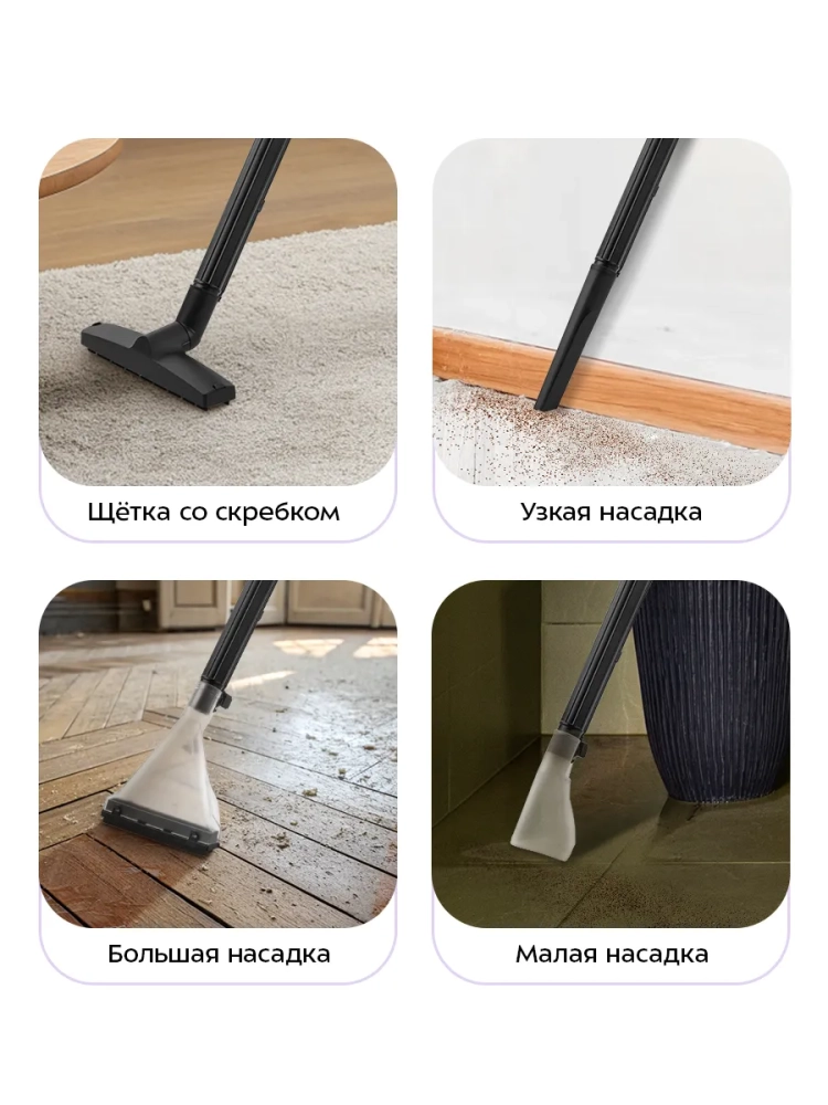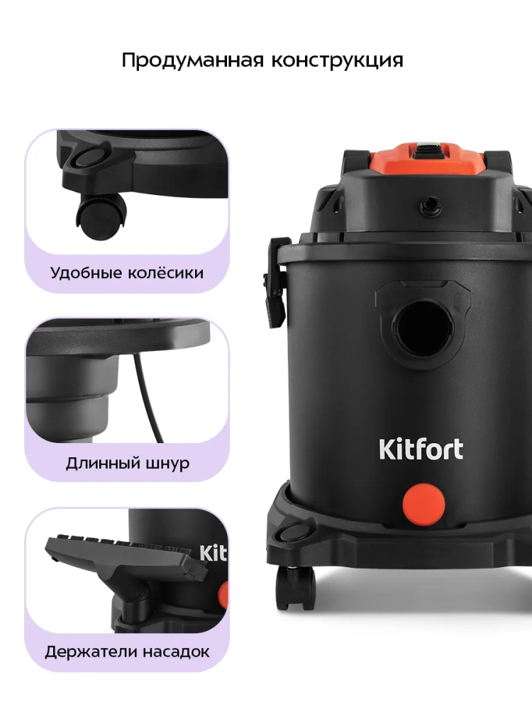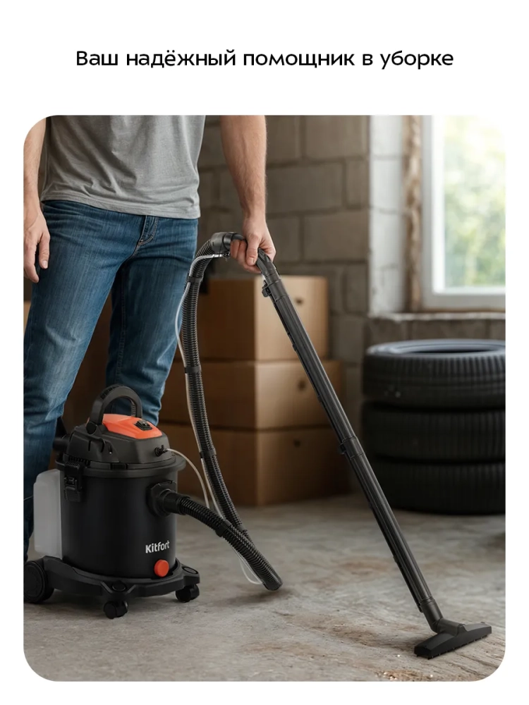 Моющий хозяйственный пылесос КТ-5552 - это универсальная техника для эффективной уборки в доме. Он предназначен для сухой и влажной уборки, что делает его идеальным помощником в поддержании чистоты на полу, мебели и коврах. С помощью этого пылесоса можно легко собрать мелкий мусор или пролитую воду с пола, обеспечивая качественную чистку различных поверхностей. Пылесос оснащен функцией выдува: достаточно подсоединить шланг к выходному отверстию на моторном блоке. Это позволяет продуть вентиляционные решетки или сетки от комаров, а также очистить компьютер от пыли. Моющий режим устройства помогает эффективно очищать обивку диванов и кресел, а также ковры и ковровые покрытия будут чистыми. В резервуар для воды объемом 3 литра можно добавить специальное моющее средство для более тщательной чистки без излишней пены. Пылесборник емкостью 20 литров подходит как для бытовой уборки, так и после ремонта — он легко очищается благодаря сливному отверстию в нижней части контейнера. Пылесос оборудован фильтром тонкой очистки класса F9 и поролоновым фильтром, которые защищают мотор от попадания пыли. Устройство работает при напряжении ~220–240 В с мощностью 1200 Вт и имеет уровень шума ≤80 дБ. Длина шнура проводного пылесоса составляет 6,9 м, что обеспечивает удобство использования даже в больших помещениях. Размеры устройства — 325 x 375 x 480 мм — делают его компактным решением для хранения дома.