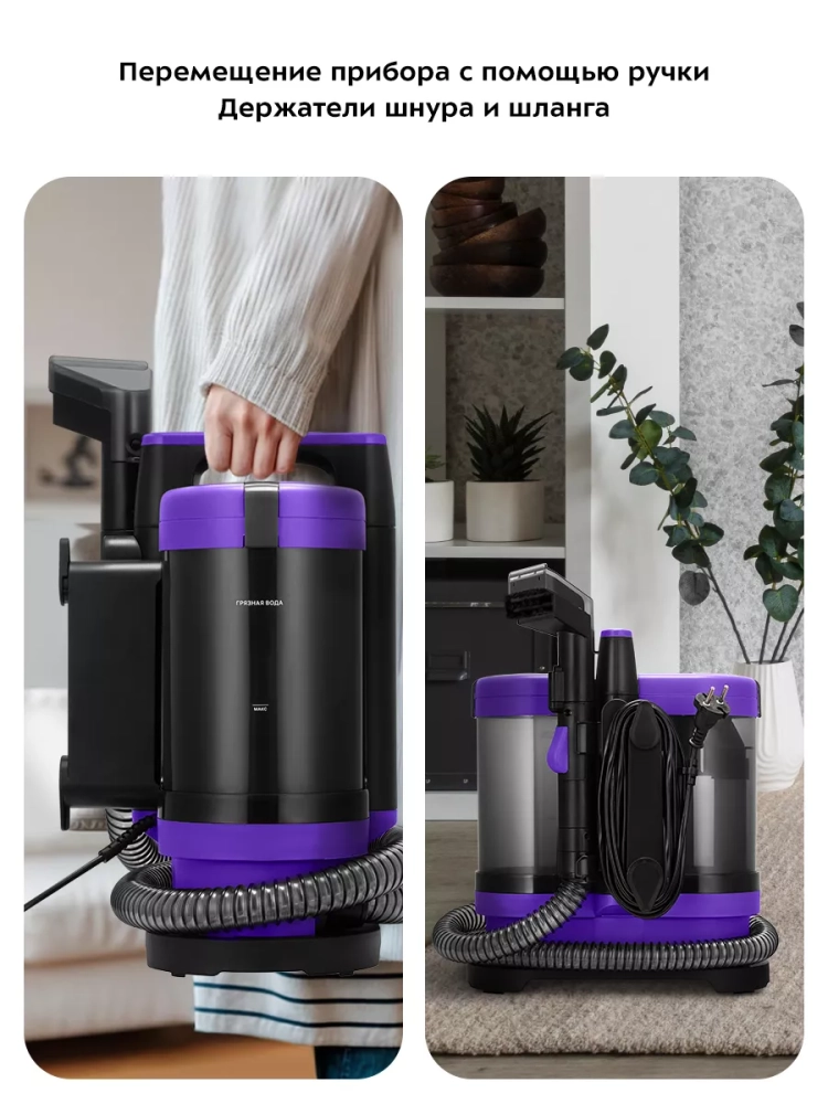 Моющий пылесос предназначен только для влажной уборки и не подходит для того, чтобы просто пропылесосить полы, диван или ковер. Не используйте моющий пылесос для сухой уборки.