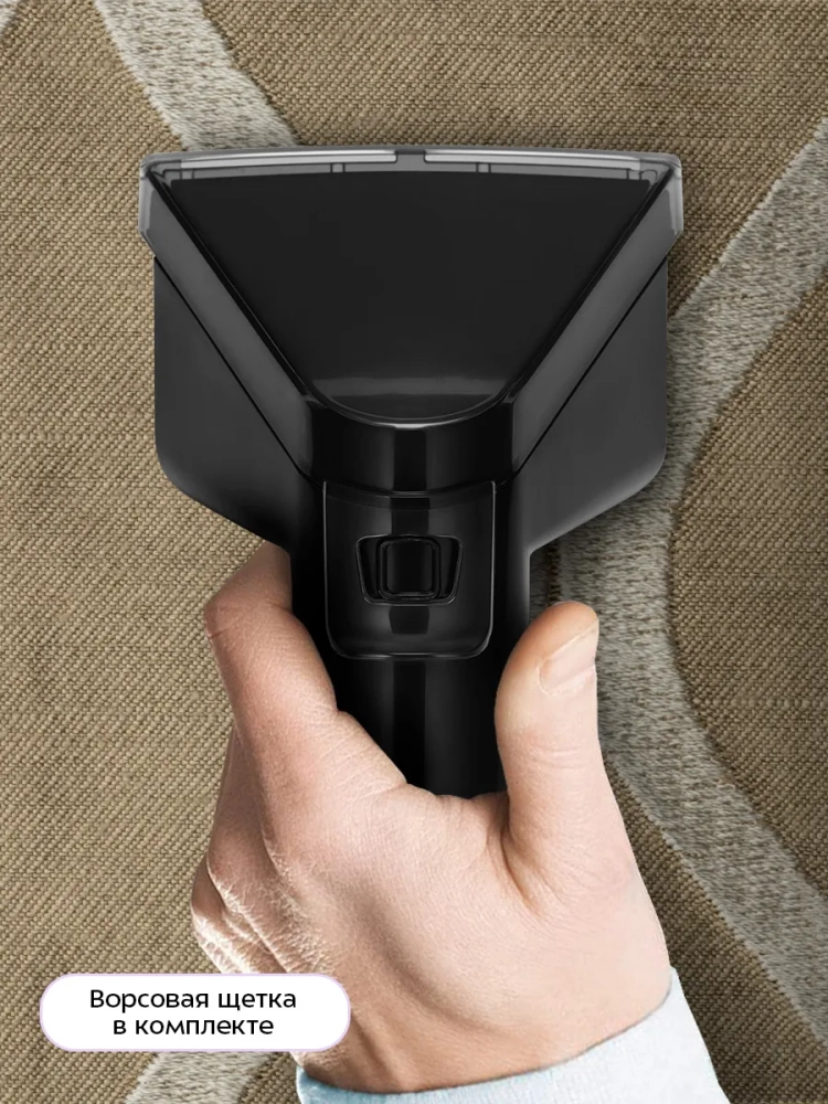 В комплекте поставляется насадка с ворсовой щеткой. Она хорошо подходит для очистки въевшихся загрязнений и ковровых покрытий.