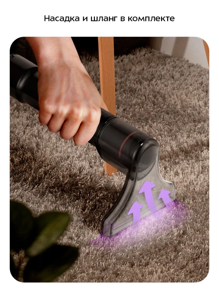 Пылесос питается от аккумулятора, поэтому вы можете использовать его в любом месте, не беспокоясь о наличии розетки рядом, например, чтобы очистить салон машины. Также шнур не будет мешать во время уборки.