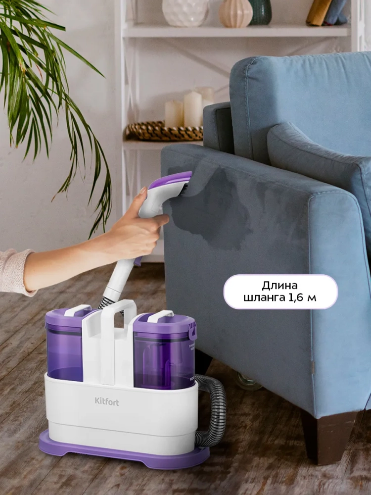 Моющий пылесос для ковров и мягкой мебели Kitfort KT-5565 поможет очистить обивку дивана, кресел, сидений в машине и другой мягкой мебели, а также ковры и ковровые покрытия. Пылесос автоматически подает чистую воду на очищаемую поверхность, а затем всасывает воду с пылью и другими загрязнениями. Пыль и грязь оседают в воде в резервуаре для грязной воды. В резервуар для чистой воды можно добавлять воду или воду со специальным чистящим средством. В резервуаре для грязной воды предусмотрена защитная вставка с поплавком, который по мере наполнения резервуара поднимается. Когда резервуар для грязной воды будет наполнен выше максимально допустимого уровня, поплавок перекроет всасывающее отверстие и защитит двигатель от попадания влаги. В таком случае пылесос перестанет всасывать жидкость. Отключите пылесос и вылейте грязную воду из резервуара.