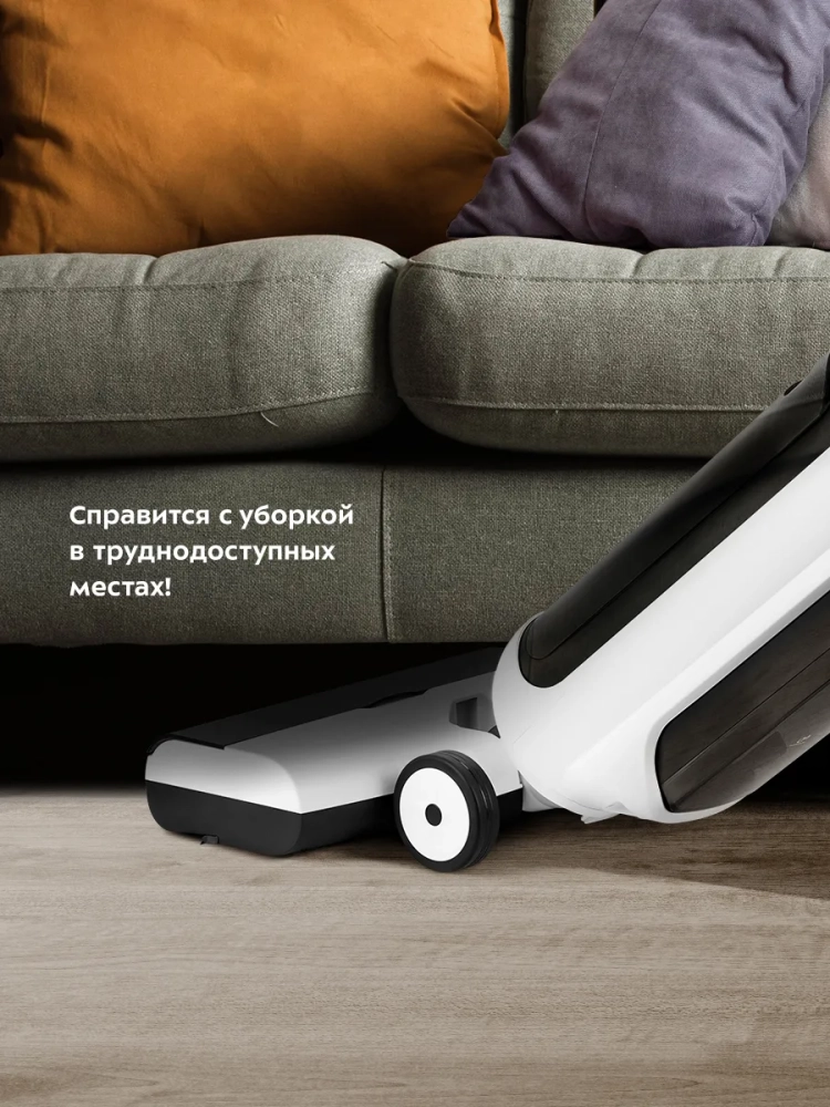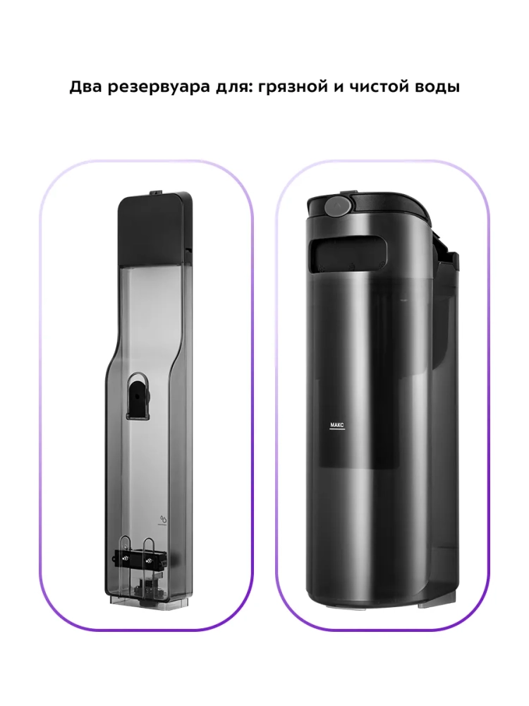 У устройства два режима работы: режим влажной уборки и режим сухой уборки без подачи воды. В резервуар для чистой воды встроено устройство, которое ионизирует воду.