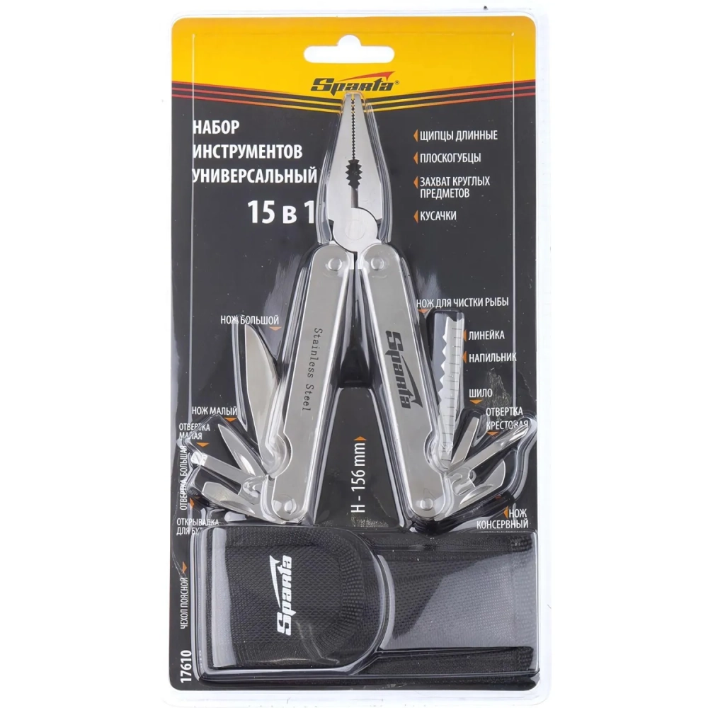 Мультитул трансформер Sparta 156 мм, 15 предметов, в чехле 17610