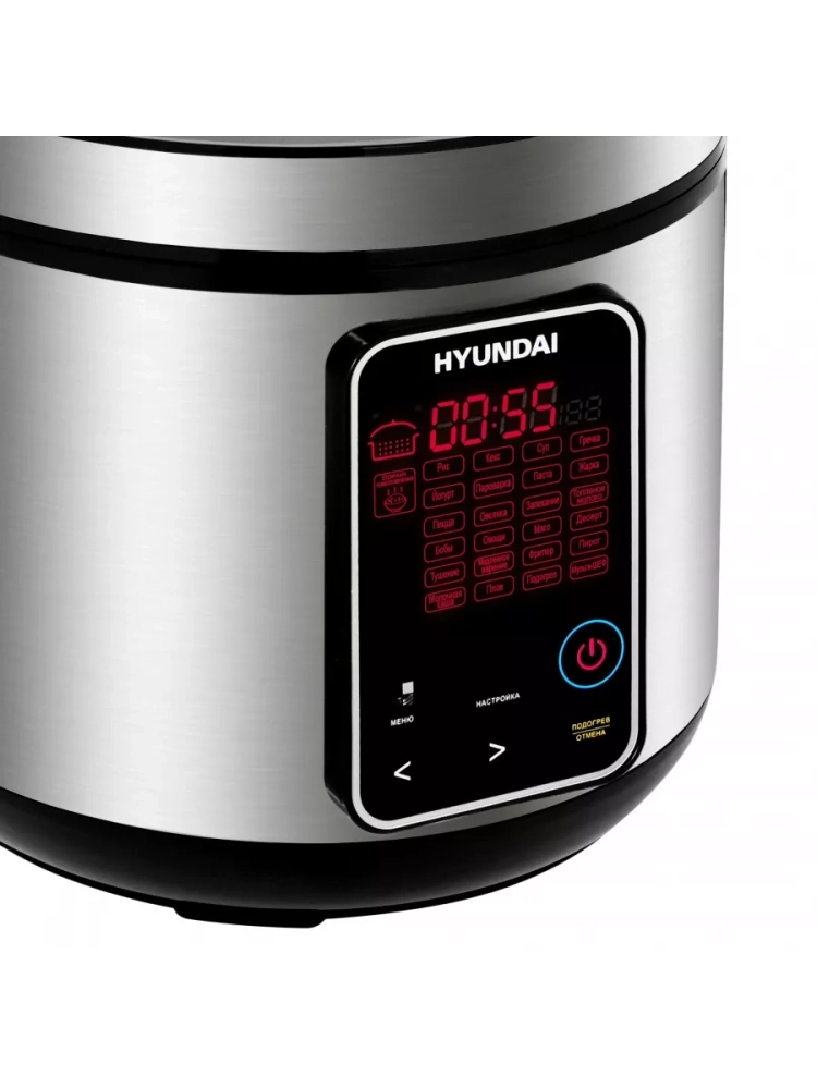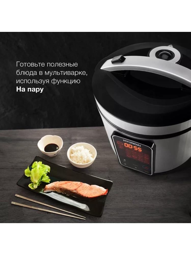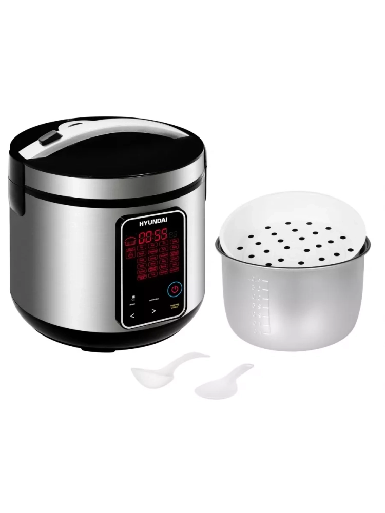Мультиварка Hyundai HYMC-2400 серебристый/черный, мощность 900Вт, объем чаши 5л, покрытие чаши тефлоновое