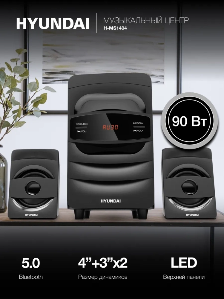 Микросистема Hyundai H-MS1404 – это музыкальный центр, портативная акустическая система с парой мощных трёхдюймовых колонок и оригинальным дизайном.
